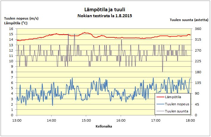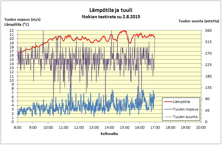 Jälleen oli ongelmia sääaseman kanssa: tällä kertaa sähkö ei loppunut eikä yhteys pätkinyt (kuten on käynyt aiemmin), mutta mittausdatan tallentava läppäri oli syystä tai toisesta sammunut sunnuntaina kolme tuntia ennen 12 tunnin ajon loppua. Perskules, ensi vuonna tällaista ei saa enää sattua.
