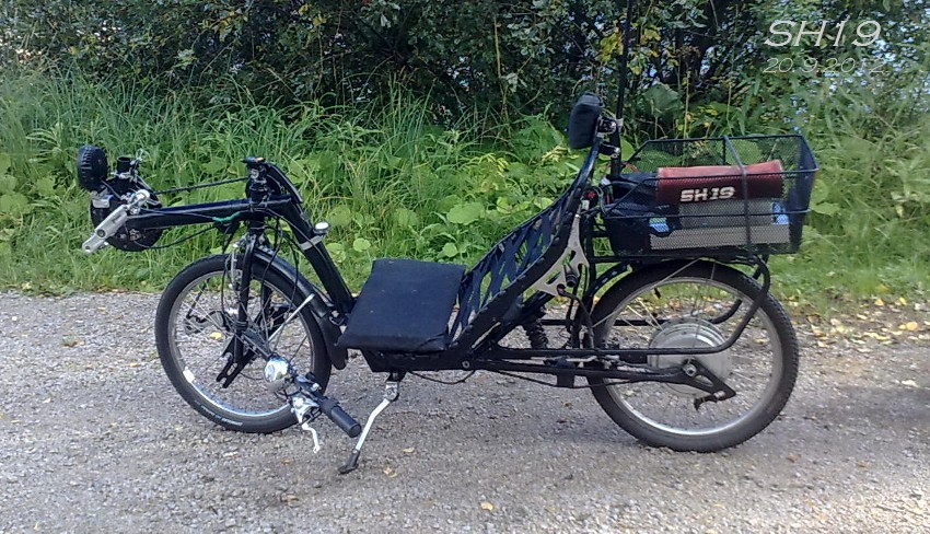 Kyllähän nojapyörästä saisi paljonkin maastokykyisemmän, mutta sellainen ei taas ole hyvä asfaltilla. Tulee raskas, huonosti rullaava ja herkästi polkemisen tahtiin pompottava pyörä. Ainakin jos tällaisella alle 200euron budejtilla rakentelee