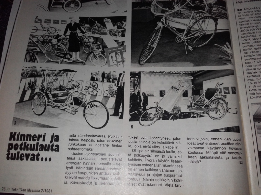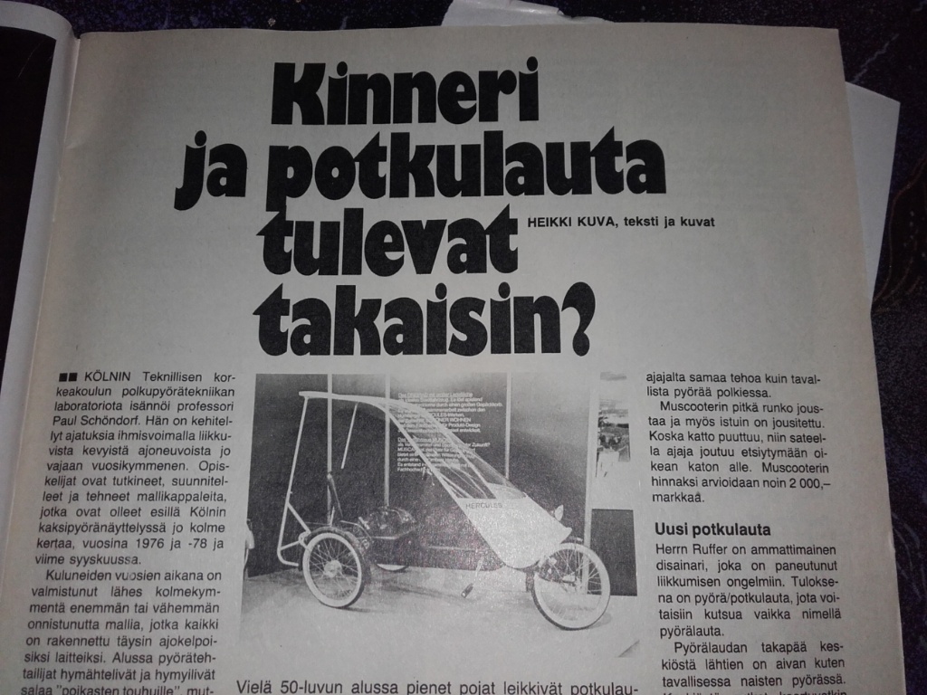 Amfibiokinneri oli aeron ja futuristisen näköinen, mutta rottingista tehty tandemkinneri pisti repeilemään. Ei mitään uutta auringon alla, kun mulla rottinkirulla on avaamatta Mutta on tuossa Suomihulluusaspekti, kun 40-luvun kinneri oli Suomen ainoa edustaja Ruotsin kisassa. Ei siis mitään uutta edes tässä maassa rottinki, joten rottinkikoe olisi uutuuden sijasta retroa perinteitä kunnioittavaa lähes 70 vuoden jälkeen ja siten moternit hapatukset, kuten hiilikuituputki voisi jättää junioreille ja futuristeillekö?