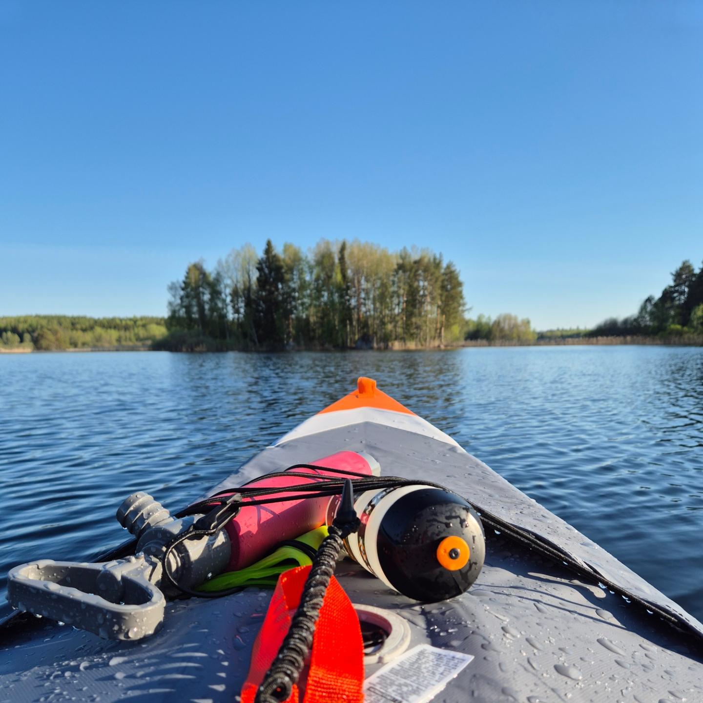 Melonta. Hommasin pumpattavan kajakin ja aloitin harrastuksen uudestaan tauon jälkeen. Olemme remonttia paossa järvimaisemissa, joten melomaan pääsee omalta laiturilta kun haluaa :)