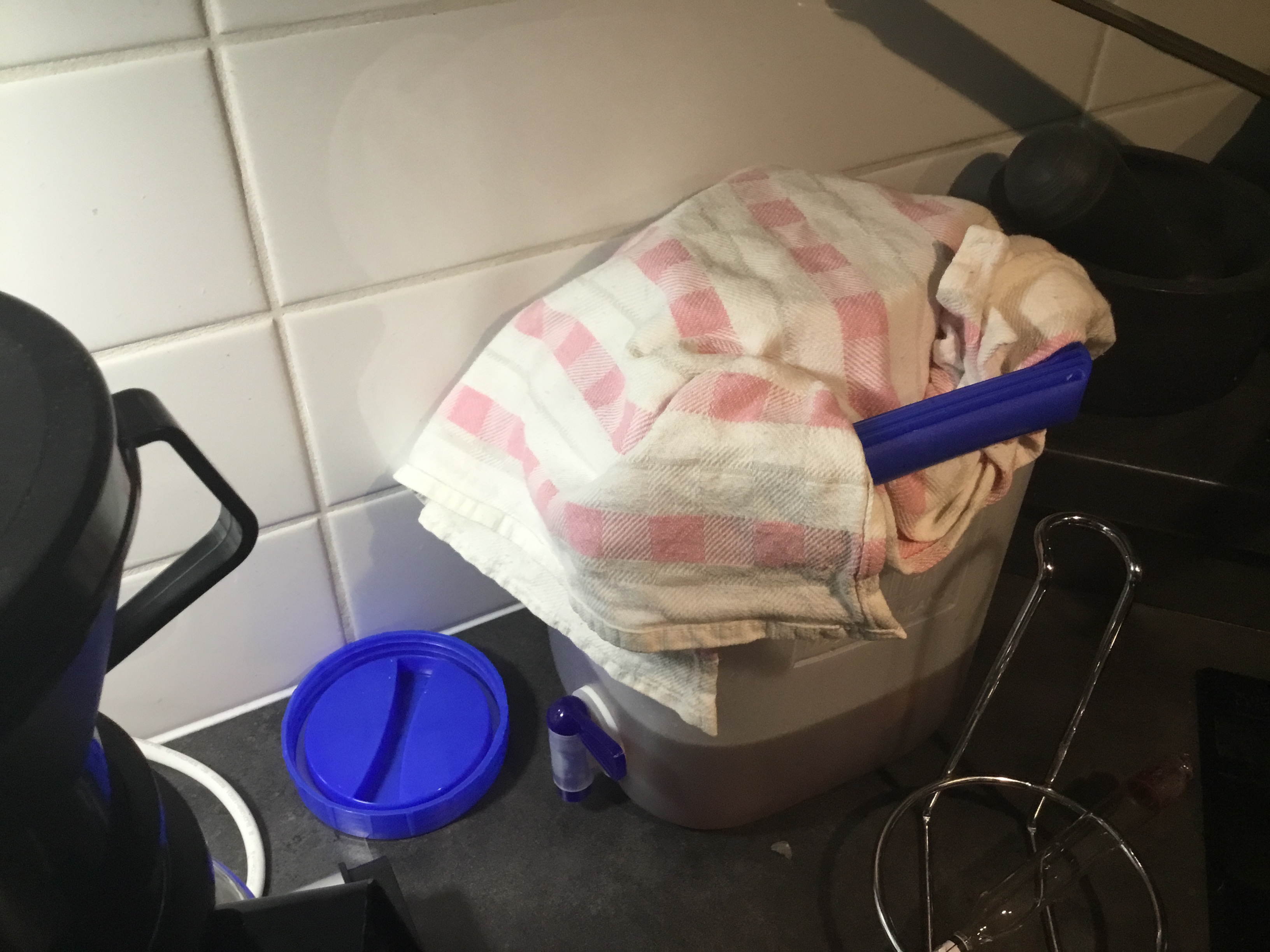 Ominaispaino ei enää muuttunut. Siispä pullotukseen. Jälkikäymissokeria 0,8% per 20L eli 160g liuotin pariin litraan olutta. Tässä vaiheessa tuli hässäkkää, enkä ehtinytkään alkaa pullotuspuuhiin.