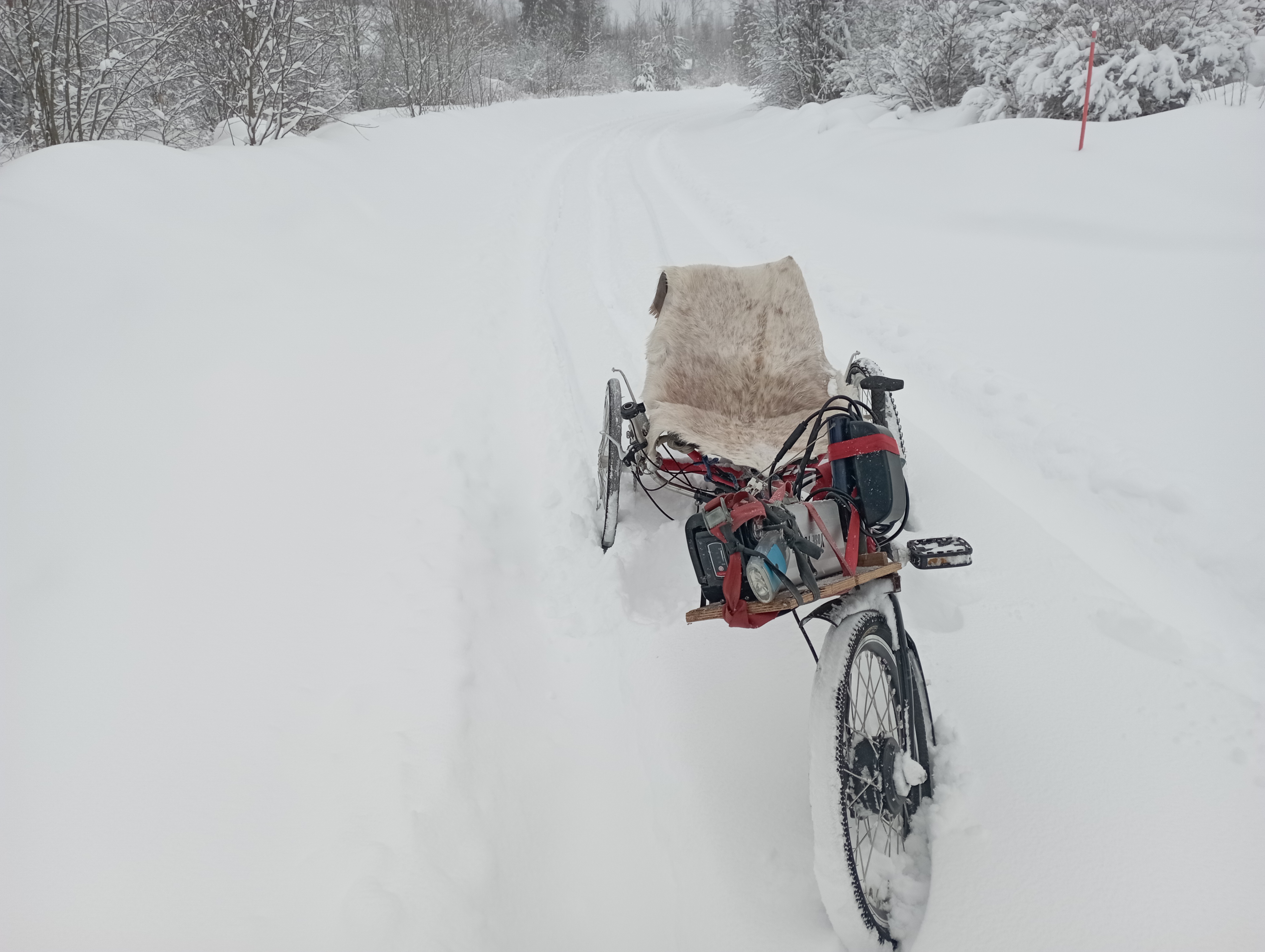 Ja joo, sähkömoottorilla avustettuna kulkee CF-MBB tavaratandemikin hämmästyttävän paksussa hangessa. ![]()