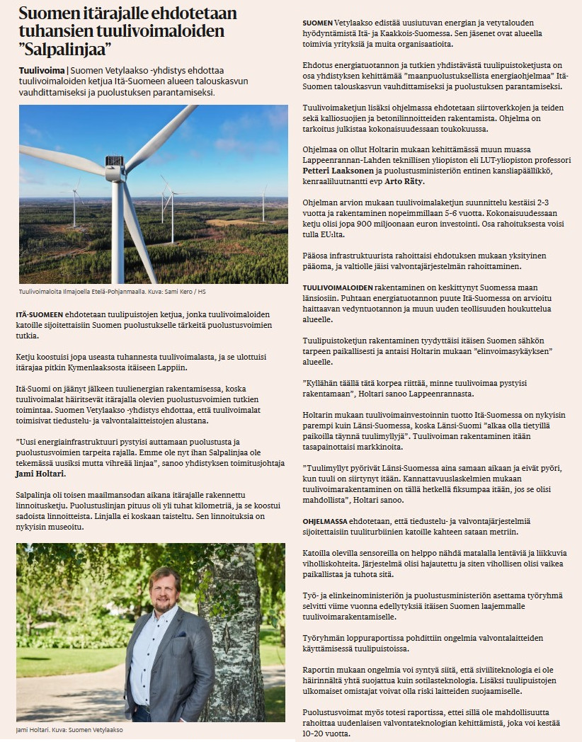 Puolustusvoimat jossain toisessa jutussa epäili toimivuutta. Yksi syy oli, että myllyt heiluu liikaa ja tutkakuva olis epätarkka. Toinen, että heidän tutkalaitteensa ei olis turvassa ku myllyssä ramppaa siiviileitä.