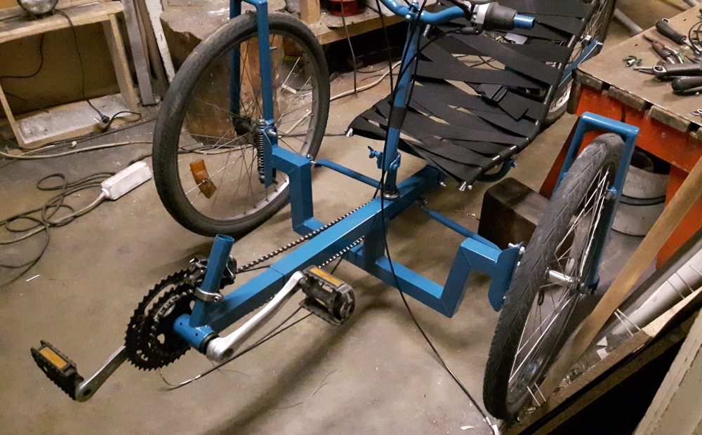 Kun kaksi aiempaa variaatiota ei oikein pelittänyt, tein kolmannen, joka muistuttaa oravaohjausta. Kahden ensimmäisen suurin ongelma oli, että sivuille jäi liian vähän tilaa käsille vaihteille ja jarruille. Aikomushan on laittaa lentokonevanerinen korikin kaiken päälle.