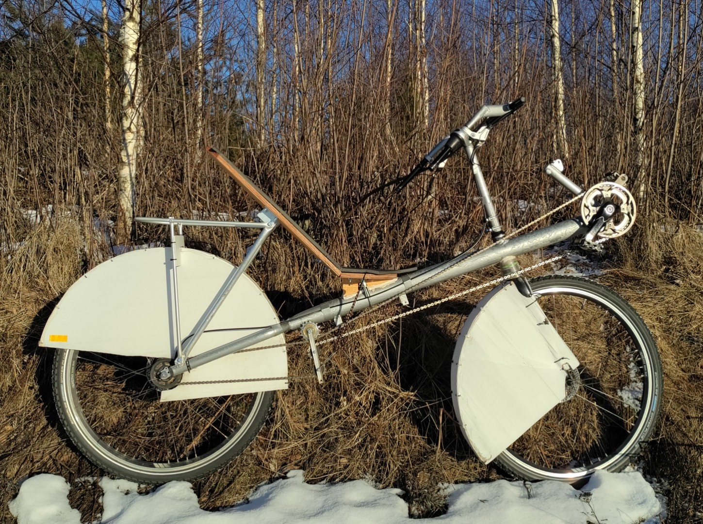 Ehkä teenkin läskipyörän ensi talveksi, samanlaisen tikkurunkoisen. Ajoasentoa haluaisin tosin hieman viilata, siis lonkkakulmaa avoimemmaksi samalla nojakulmalla, eli polkimia alemmas.