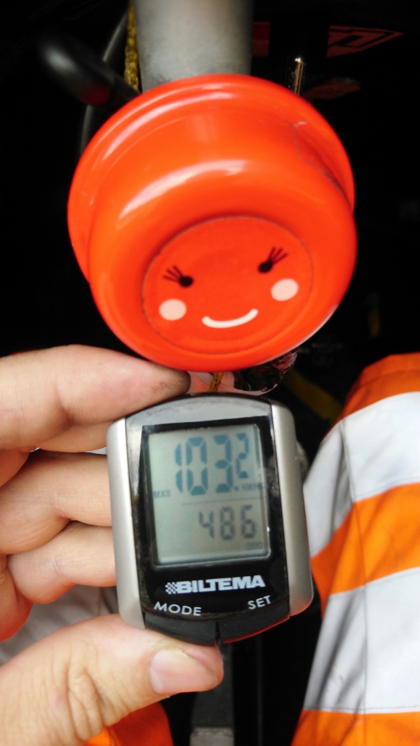 Sinänsä yllättävää, että patterissa on vielä henkeä kun mittari unohtui talveksi pyörään ja pyörä oli ulkona pakkasessa.