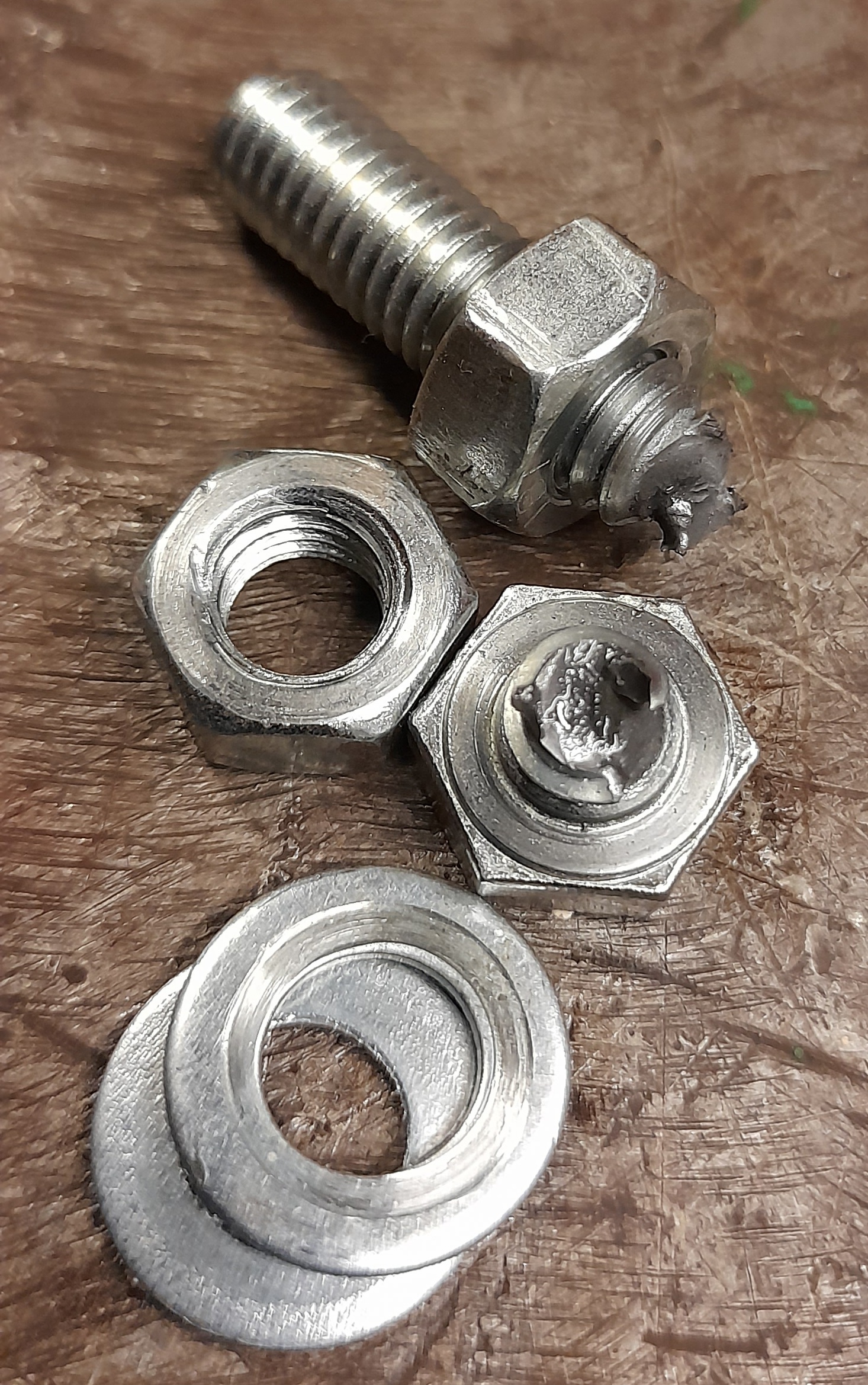 Kun kerran kokeilette näitä, olisi mielenkiintoista nähdä koe kahdella tavallisella mutterilla. Niillä on tietysti vaikea kiristää pulttia poikki, mutta sekin onnistuu, kun mutterit kierretään tiukasti toisiaan vasten ja kiristystä jatketaan uloimmasta kannasta. TOisiaan vasten kiristetyt mutterit eivät liiku kuormittamattomass pultissa, mutta kun pultti kiristyksen myötä alkaa merkittävästi venyä, tällainen toisiinsa kiristetty mutteripari alkaakin pyöriä helpommin. Pultti siis venyy kauttaaltaan toisiaan vasten kiristämisen tuottamaan, mutteriparin sisälle muodostuneeseen jännitykseen ja venymään. Parhaassa tapauksessa tällaisella parilla on mahdollista lähes kaksinkertaistaa pultin vetovoima yhden mutterin kiristykseen nähden.