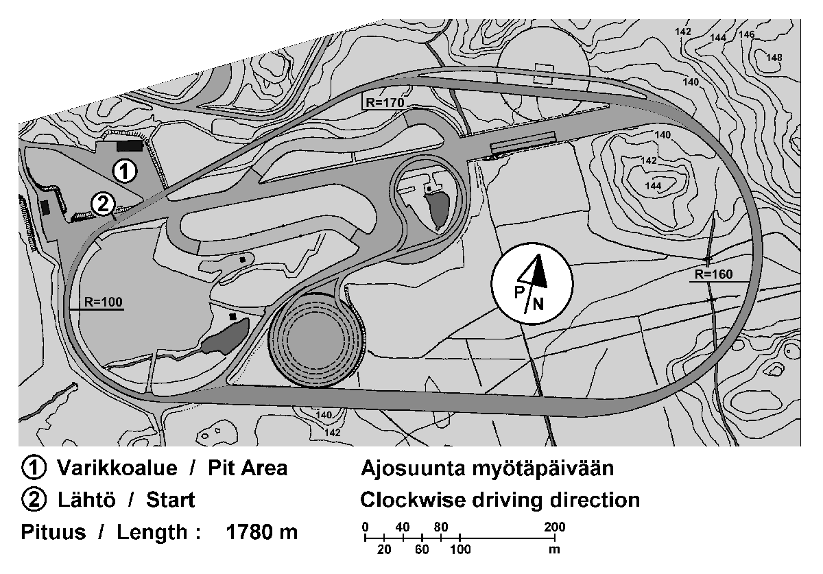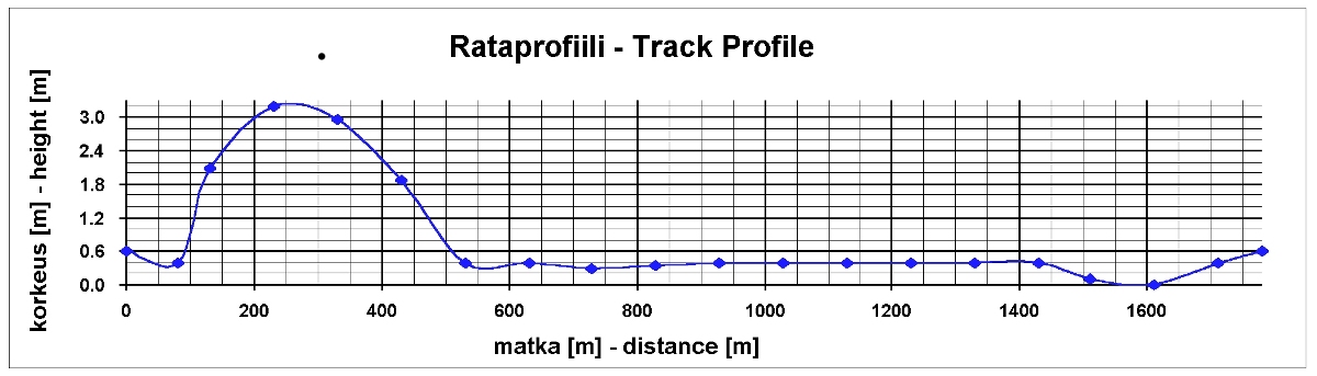Kiitokset Jori, hyvä että löytyy "virallista" dataa radasta. Ajattelin tuota jo pihistelijöiltä kysyäkin, että eikös heidän kisaradoistaan pidä olla tarkat tiedot selvillä. Eivät rata-alueesta nykyään vastaavat moista mittausta näköjään tienneet/muistaneet. Maan painumista on tod.näk. tapahtunut.