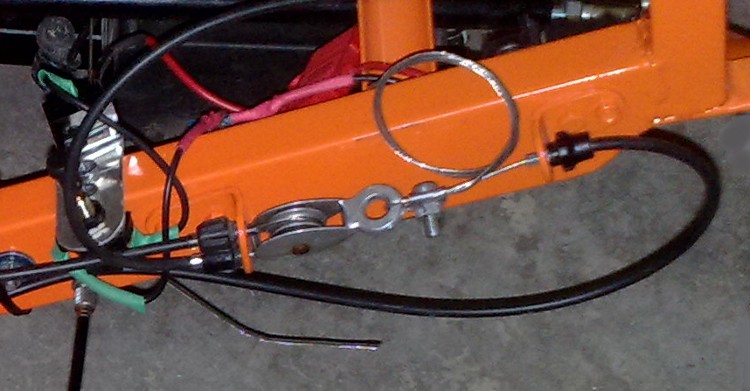 Äkkiseltään voisi olettaa että että vaikka pikkanen putki klemmari johon poraa 2 reikää vaijereille ja pelti, pulttimutteri prikka viritys johon laidoille jarruille menevät vaijerit kiinni ja keskelle kahvalle menevä...