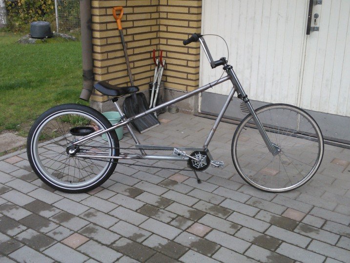 Ei ja haittapuolena on se että vaatii suuremmat ohjausliikkeet kuin lyhyt. Mutta miten muuten voit tehdä pyörän jossa on pystyhkö istuma-asento? Tulee joko pitkä tai korkea tai pienet renkaat tai jalkaohjattava, joka on liian hidasta reagoimaan vaihtelevissa pito-olosuhteissa.