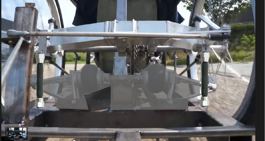Tälle kaverille olisi varmaan hyvä vinkata pneumaattisesta ilmalihaksesta. Se on paineilmalla toimiva kaupallinen komponentti, joka supistuu paineilmalla pituussuunnassa. Tässä konstruktiossa voisi jättää aika suuren määrän hankalia rakenteita pois käyttämällä sitä, menettämättä silti paineilmajousien säädettävyyttä tai muitakaan ominaisuuksia.