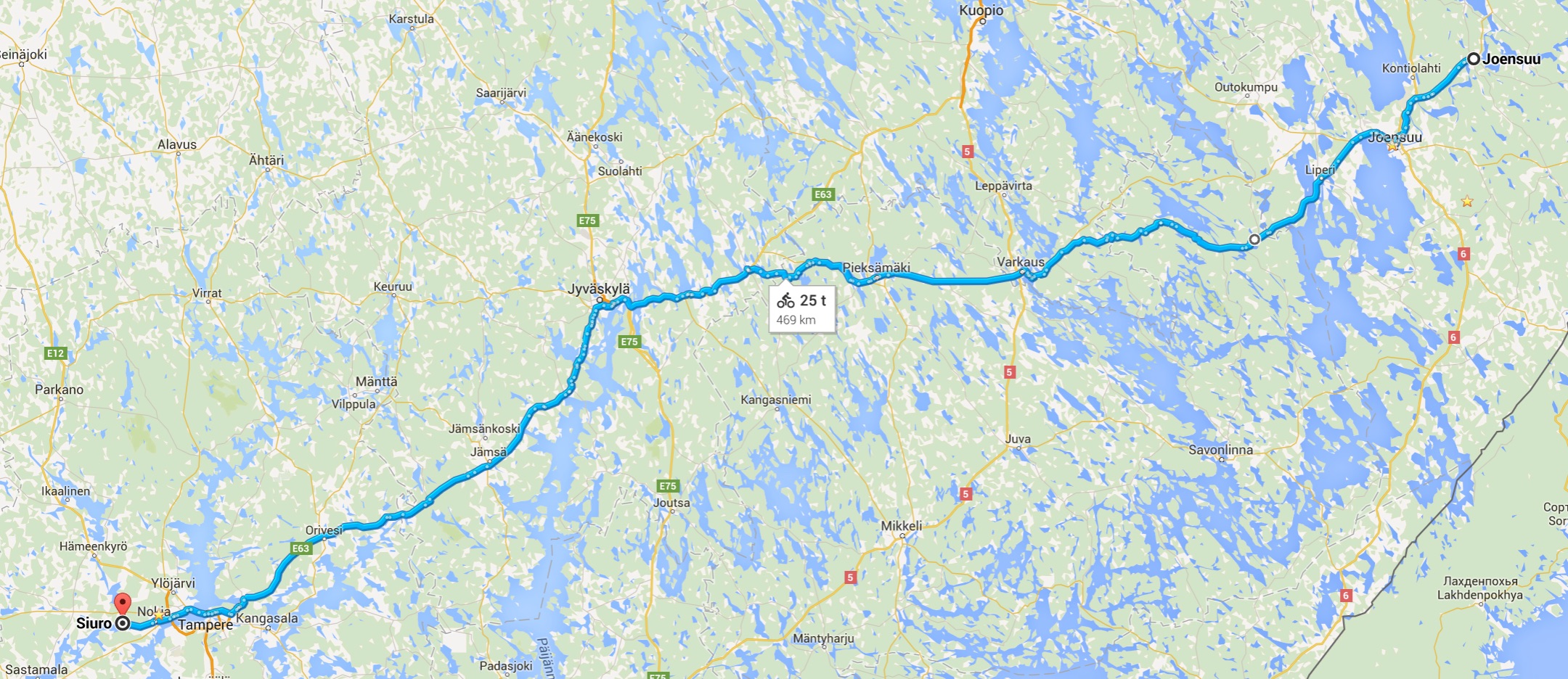 Olen tässä jonkin aikaa miettinyt miten ajaisin tämän autolla tutuksi tulleen - Joensuu - Siuro pätkän pyörällä.