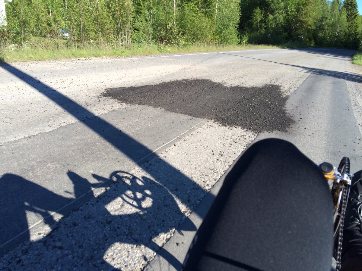 Tässä oikein "hieno" idea korjata tietä , aja siinä sit pyörällä laidassa. :mrgreen: