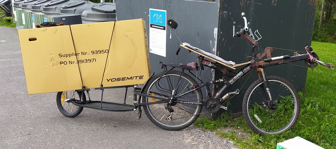 Tähän vielä tarakka ja myöhemmin lokasuojat. Tarvittaessa perään jo aiemmin hyväksi havaittu Bob Yak kopio, eli Qeridoo Qx: