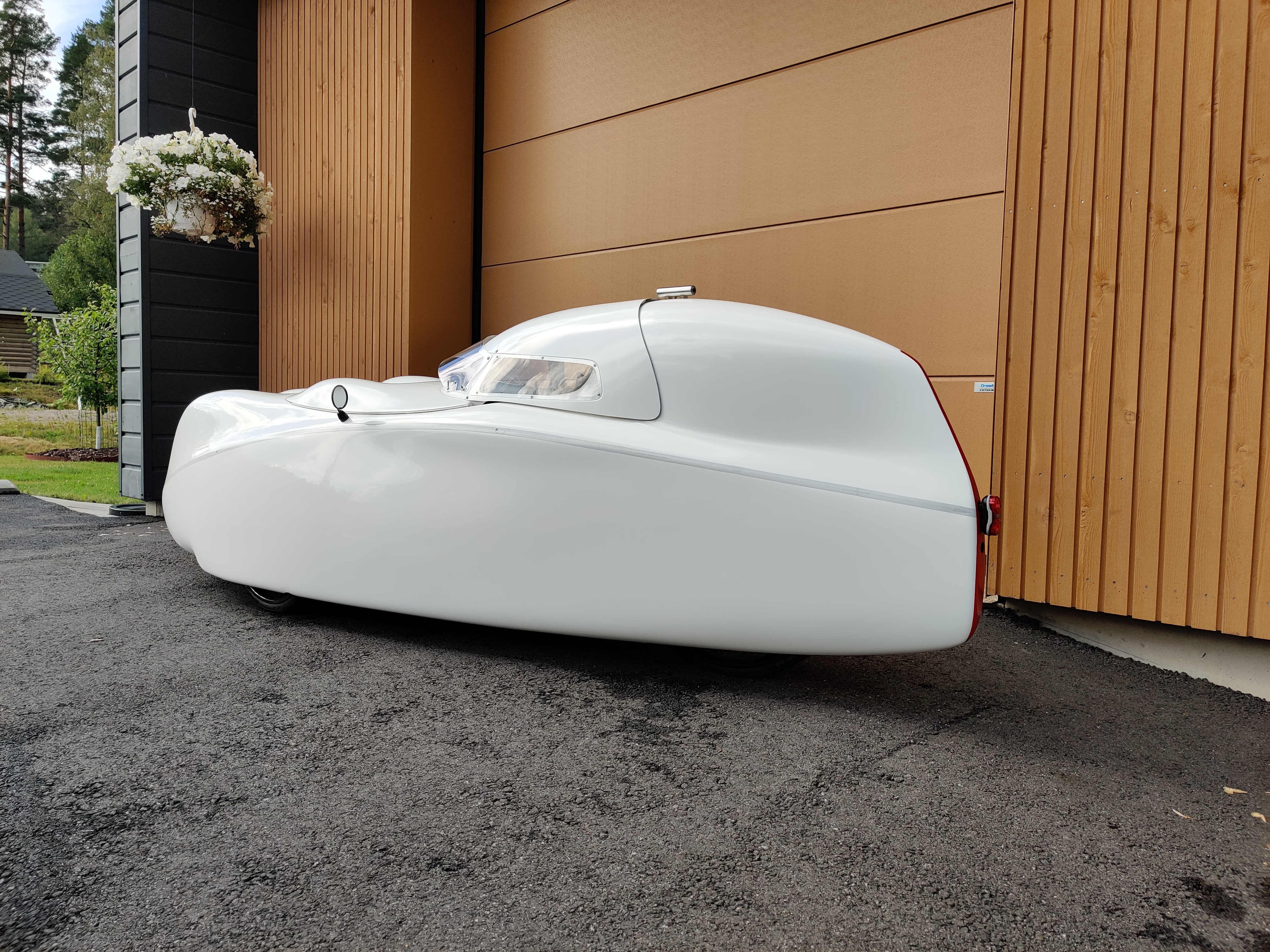 - hiilikuitukuomu, jonka saa jaettua kahteen osaan ja joka mahtuu siten katteiden sisään. Ajaa voi ilman kuomua, puolikuomulla tai sateen pitävällä kokokuomulla.