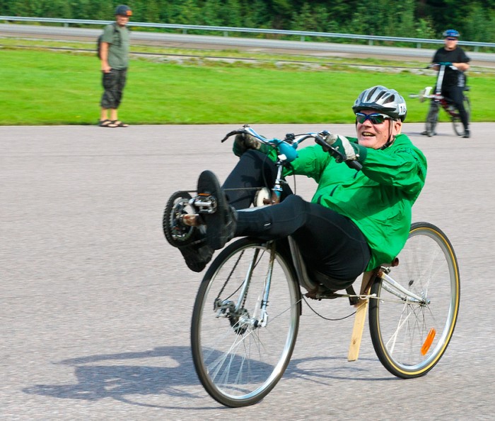 Kyllähän tuohon pakoputkipyörään mahtuu pidempikin polkija ja hänen polvensa, esimerkiksi Jori Penkkihän on hyvin alhaalla kun ottaa huomioon, ett kiekot on 622mm kokoa. Plus lyhyet kammet