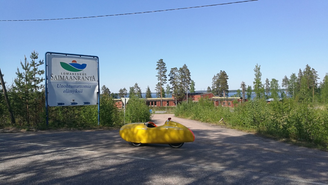 Muuten oli kovin kaunista Taipalsaarenmaisemat, vanhan ajan maaseutumaisemaa. Mutkasta ja pieniä mäkiä vuoronperään ylös ja alas - kinneritietä siis. Lopussa oli muutama ryömimällä noustava harjukin, osin johtu reisien väsymisestä. Viimesillä kilsoilla oli päällystevaurioita ja sepelipaikkauksia mutt ihan ajettava tie kumminkin. Joissain kohdin tie aika kallellaan.