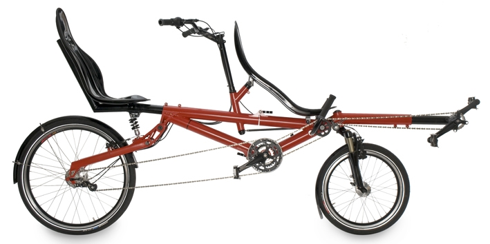 Useammasta putkesta ja korkeampi. Muutenkin paljon jäykempi kuin yhden hengen pyörä, näinhän se menee pystäri puolellakin. Googlen kuvahaku sanoilla "recumbent tandem" tuottaa paljon hyviä tuloksia. Ei ole sattumaa että kaikki alle puolen metrin istumakorkeudella olevat tandemit on trikejä. Lähes kaikissa kaksipyöräisissä on myös pystyhkö nojakulma ja ohjaus jossa kädet ei tasapainoillessa heilu puolelta toiselle kuin viikateniiton sm:ssä.