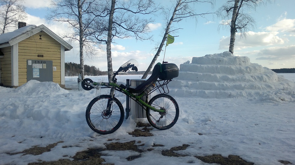 Kotona kävin pukemassa vaippapöksyt ja vaihtamassa kulkinetta, sitten kidutin itseäni pari tuntia maastopyörän satulassa. Kuvasta voi saada harmaan aavistuksen miksi kiipeää pystärin satulaan ja poistuu asfaltilta