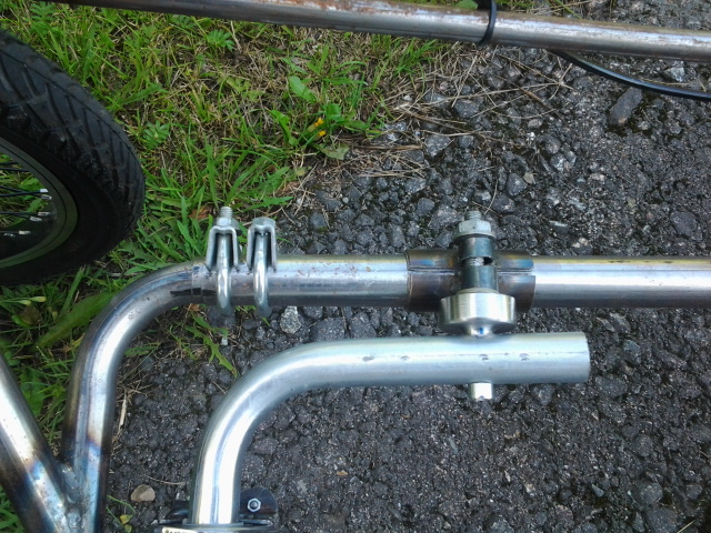 Sivulla kulkevan ketjulinjan takia valittiin poljinkampien sijaan kampiakseli, joka kiinnitettiin sivurunkoihin -sekin putkipuristimilla, mikä mahdollisiti helpon tavan säätää pyörää polkijan mittoihin. Kampiakselin tekeminen oli tälläkin foorumilla nähty aika työlääksi monine hitsauksineen, joita varten tarvittiin jigi.