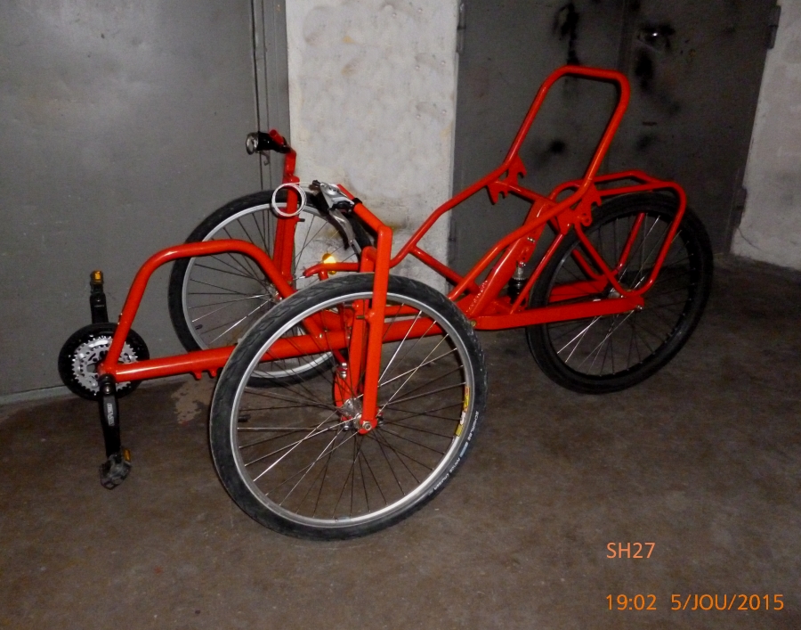 Kohta on valmis seuraava nojapyöräni SH27. Istuinremmit, ketjut, vaihtajat ja jarru- ja vaihdevaijerit sekä sähköavustuslaitteet ovat vielä asentamatta. Laite on suunniteltu ikääntyneitä ja liikuntavammaisia varten. Istuin on normaalia korkeammalla ja istumaan menoa helpottaa etuosan tukivarsi, johon voi kiinnittää myös valaisimen ja mittarit. Napamoottori tulee takapyörään. Itse olen aika vakuuttunut, että tästä tulee nyt hyvä! ![]()
