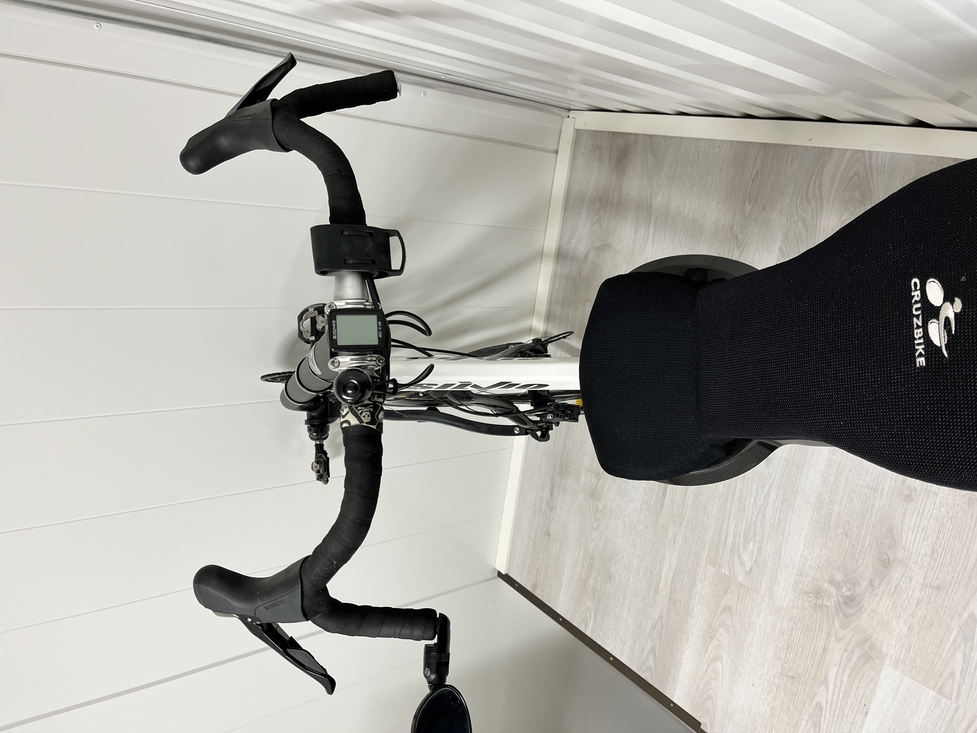 Hyvillä osilla: Shimano 105(50-34)/Ultegra (11 lehtinen pakka) + levyjarrut. Kammet 140 mm. Vanteille voi laittaa sisäkumittomat renkaat, nyt paikoillaan perinteiset sisäkumilliset.