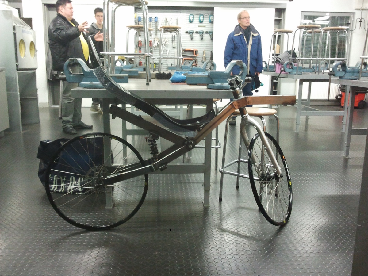 Vielä takajousen kiinnikkeet ja runko myös pysyy muodossaan, jolloin sitä voi sitten sovittaa pyörilleen. Kurssia on vielä yksi kerta ennen joulutaukoa, joten koeajolle ei tämän vuoden puolella pääse, mutta alkaa tämä jo olemaan voiton puolella.