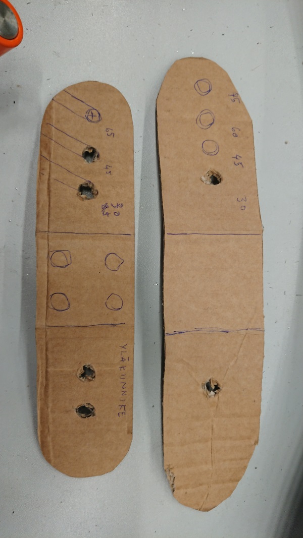 Aikaisemmin ostin tm:ltä 100mm keskiölaakerille putken, jonka toimitus sovittiin Ouluun. Keskiömoottori menee tähän suoraan ilman väliholkkeja. Tänään hain Puuilosta 1,25mm seinämällä 40mm huonekaluputkea. Näistä on tarkoitus tehdä puomi. Vielä kun saisi arvottu sopivan pituuden. Puomiin varmaan kannattaisi miettiä samalla myös tukea tulevalle katteelle ja etuvaloille. Lyhytkampisuus tietty lyhentää katteen tarvetta kurottaa eteen. Viime viikolla satuin olemaan laserleikkurin luona, kun muuan hlökunnasta siinä pyöritteli CAD:ia ja poltteli osia. Sain olkatappien toiseen päähän hitsattavat "prikat" 3mm teräslevystä. Saa nähdä onko se riittävän paksua. Em. puuhailtapäivänä askartelin myös pahviset penkin kiinnikkeet, jotta saisi kerralla valmista.