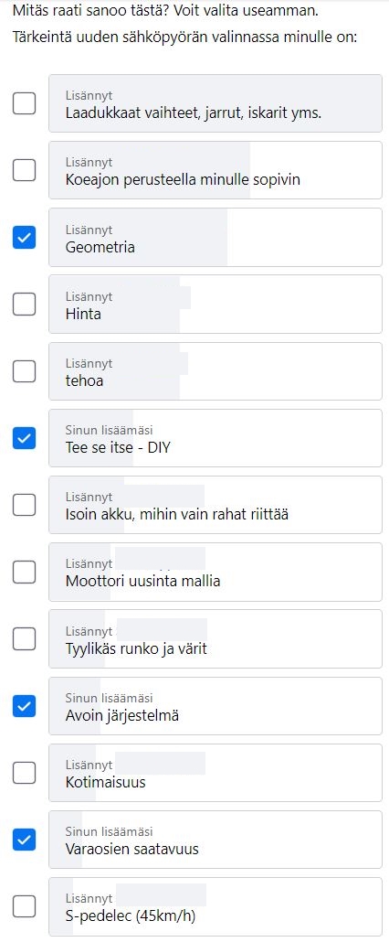 Tärkeintä sähköpyörässä kysely facebookissa 190420.JPG