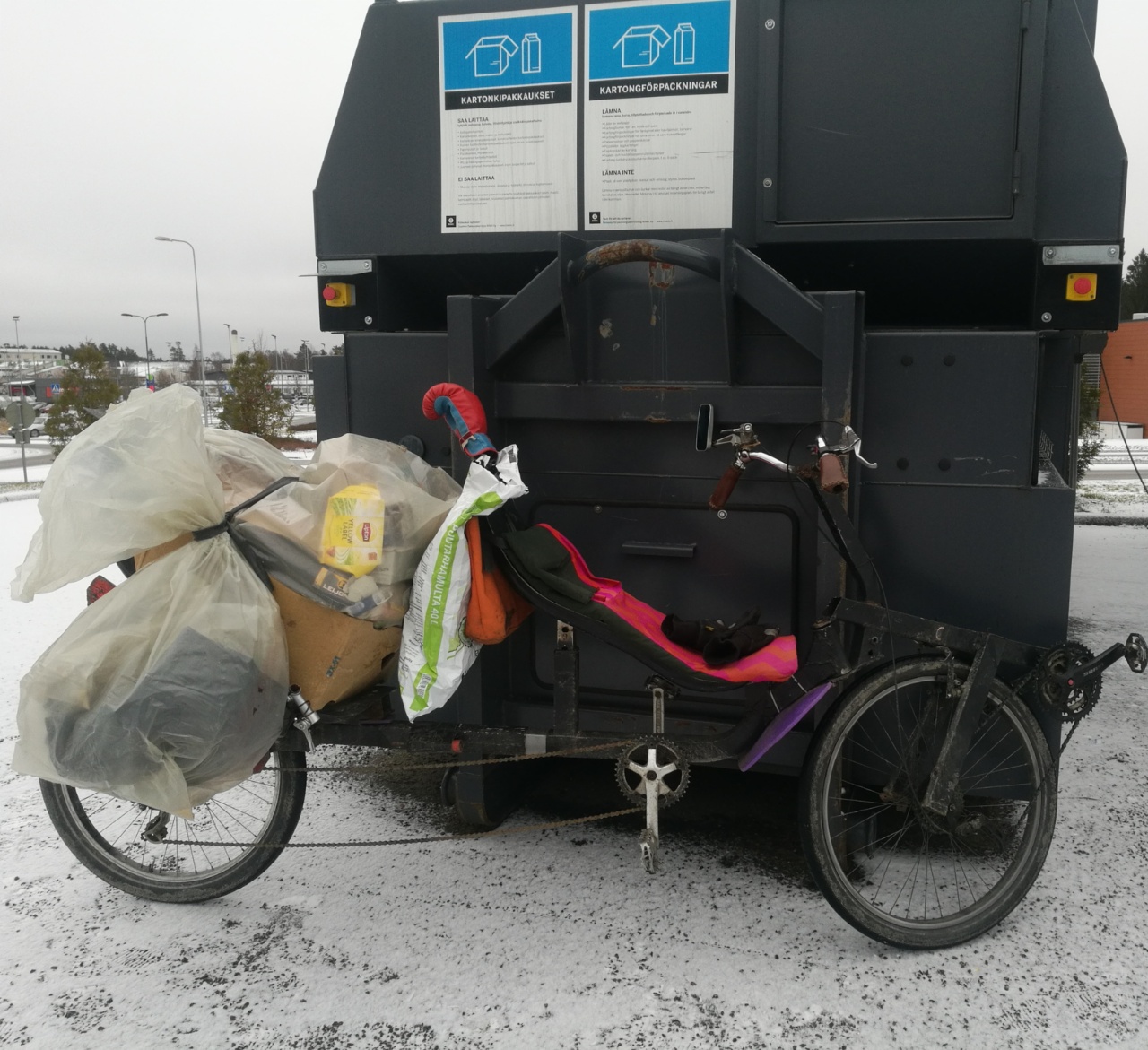 Joulun pyhinäkin kertyny pakkausmatskuu. Myös läskillä hoituu roudaus kierrätyspisteelle.