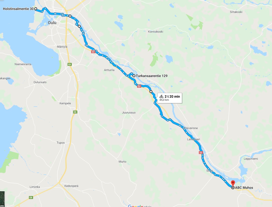 Oulu-Turkansaari-Muhos on mielestäni kauneinta (jokivarsi) maisemaa, mitä täällä päin on. Nallikarista Turkansaareen on koko matka pyörätietä ja takaisin voi ajaa joen toista puolta edelleen pyörätietä. Tämän reitin matka on noin 40km. Tämä on oma suosikkireittini Oulussa.