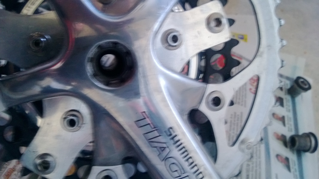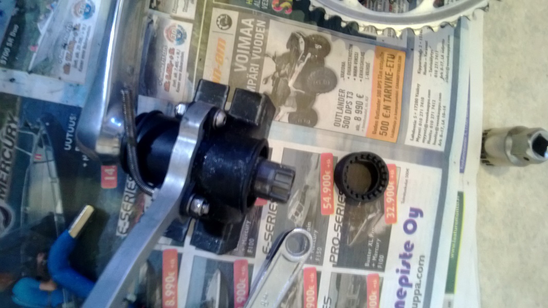 Toinen ongelma oli kammen ulosvetäjän puute ja tähän kampityyppiin soveltuvan adapterin puute, kotona käytin pultinkantaa joka nyt sitten yritti mennä "putkesta" läpi. tein lisää Jakke&Sepi virityksiä niin sain kammet irti, Jakke&Sepi viritys on vielä siellä putkessa