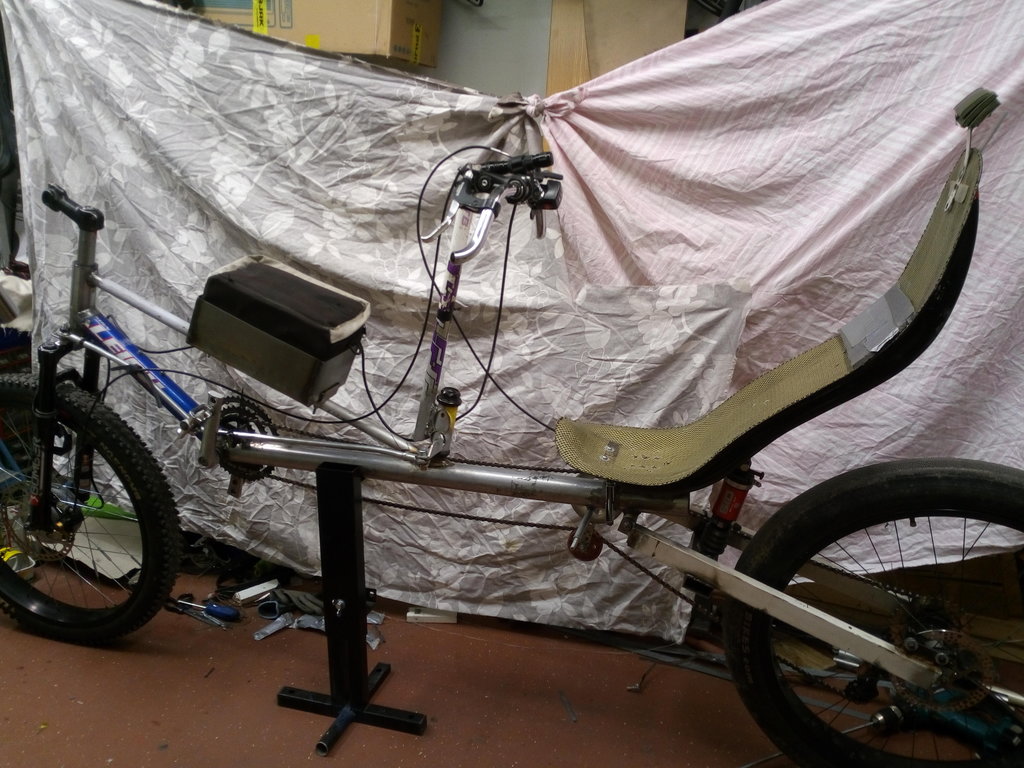 Sitte tietysti puuttuvat emmeet, penkin viistoputkelle lisätukea, takajarru, lokarikiinnikkeet, yläputki emäputkeen ja siihen akkuteline, ym.
