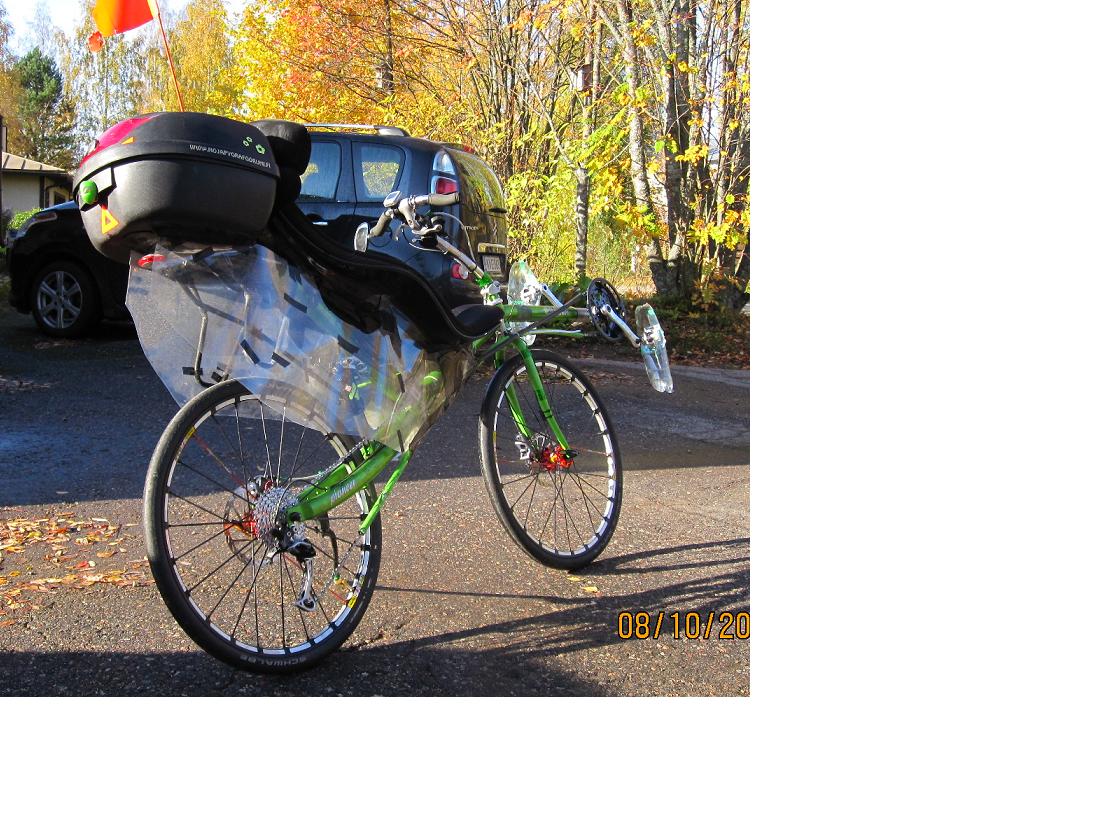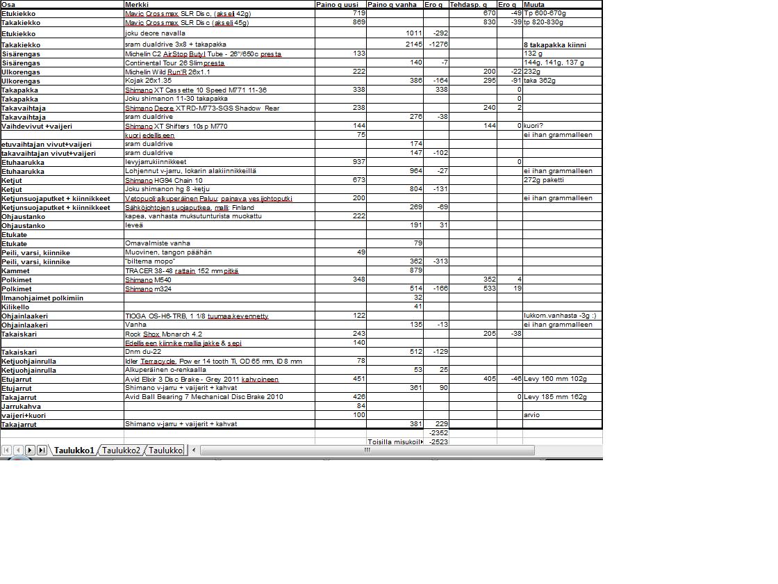 Vaakalla kävimme ja 22,8 kg näytti henkilövaaka pyörän osuudeksi ilman lukkoa 830g ja juomapulloa ja 300g työkalusettiä, nyt tosin "lenkkilukko" on 700g kevyempi mitä normaalisti käytettävä eli ajopaino asettunee 24 kg tuntumaan. Mäkiajoa kävin testaamassa eli ajoin jyrkimmän mäen tässä lähistöllä ja hyvin nousi, vauhtia hitaimmillaan samat 6,5km/h kuin ennenkin mutta ei ahista jalkoja.