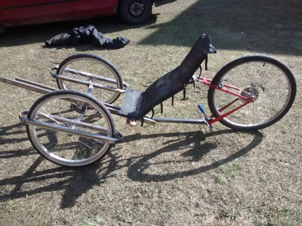 Nuo etupyörien haarukat asettelin tähtäämään tolleen taivaalle, mahtuu paremmin jalat ohjaamoon.