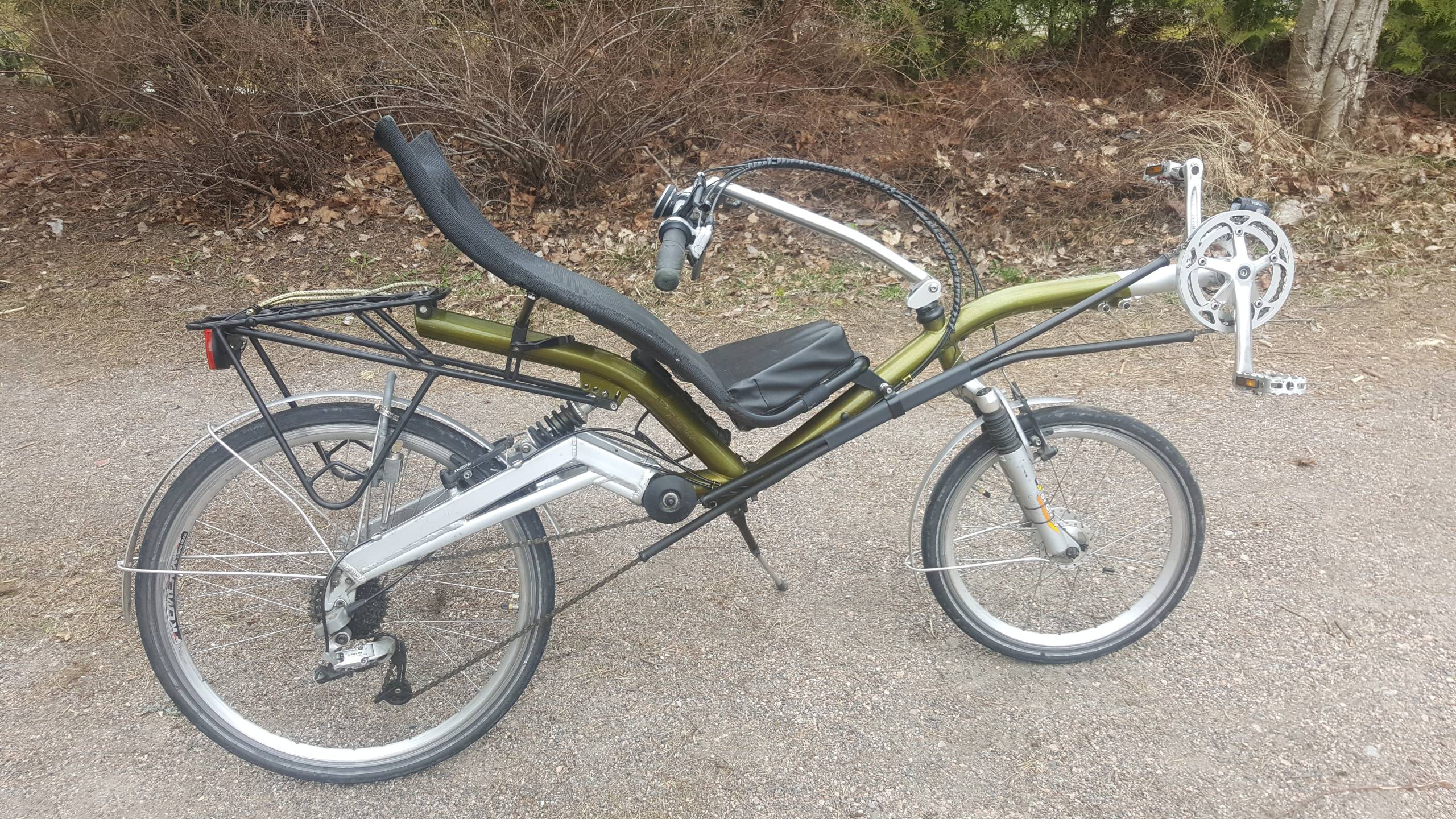 Pyörä on vuodelta 2004, mutta kohtuullisen vähän ajettu ja hyvässä kunnossa. Pyörää on aina säilytetty pyörävastossa. Vaihteistona on 24 vaihteinen SRAM dualdrive jossa 3 vaihteinen kappavaihde + 8 vaihteinen ketjuvaihde. Kappavaihde on kätevä kun saa valoihin pysähtyneenä paikallaan vaihdettua pienempäää vaihdetta silmään. Ketjut vaihdettu talvella. Takarengas on 26" ja eturengas pienempi 20" , Molemmat ovat alkuperäisiä, joten jossain vaiheessa nämä varmaan kannattaisi vaihtaa uusiin. Penkkinä on mukava verkkopenkki, jossa erillinen pehmuste pepun alla. Polkimena on kombipolkimet, joissa toisella puolella SPD kiinitys ja toisella puolella normaali häkkipoljin.
