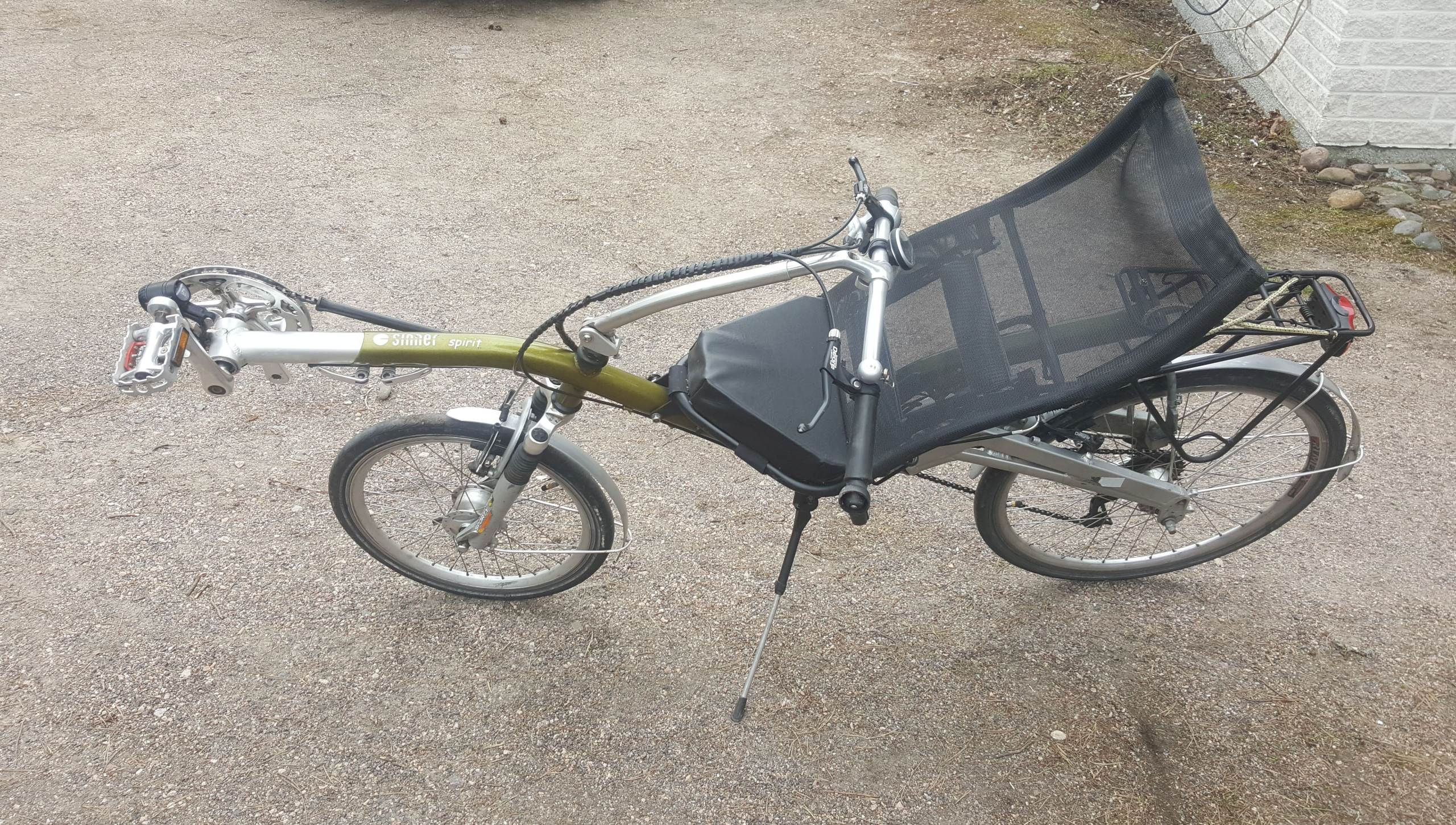 Myynnissä olisi Sinner Spirit täysjousitettu yläohjauksella oleva nojapyörä hintaan 650€ sähköpyörään siirtýmisen takia.