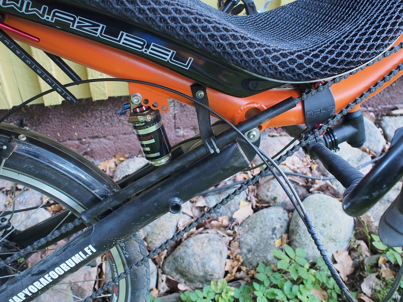 No joo, en huomannut, että aiemmin ei ollut ketjurissoja ollenkaan, ja vetävä ketju kulki taivutetun ketjuputken kautta. Sehän aiheuttaa paljon lisäkitkaa. Mutta, miksi vaikka nyt on taittopyörät, ketjuputket on poistettu? Nehän suojaavat likaantumisilta ja ohjaavat kejuja rissoille.