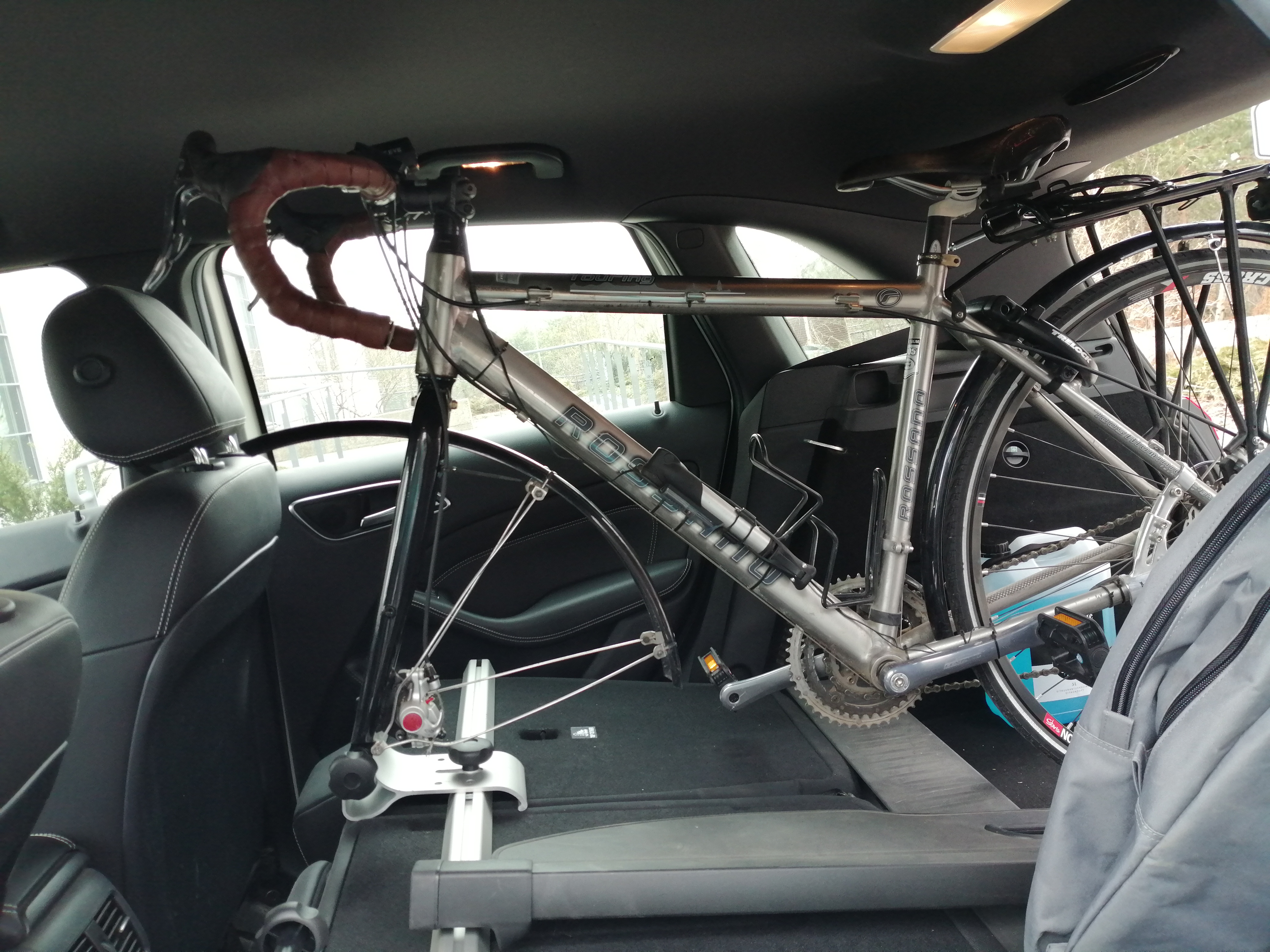 Meillä on auton sisälle tuleva pyöräteline, jossa parikin pyörää kulkee kohtuullisen mukavasti.