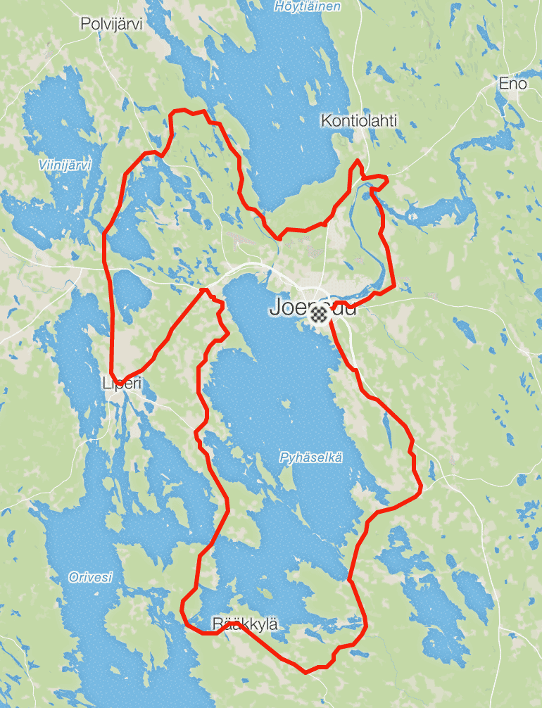 Kävin eilen ajelemassa ekan oikean brevetin - 200 kilsaa. Kuva kortista vikalla stopilla. Olin suunnitellut reitin tuolta Huhmari-Kunnasniemi tietä. Tie oli hyvässä kunnossa mutta siellä oli aika kivasti noita mäkiä - joten rupesi piiputtamaan hitusen ja tolla vikalla tauolla ostin paketin luomu kasvisliemikutioita ja hörpiskelin sitten kuuman veden kanssa vähän suolaa koneeseen.