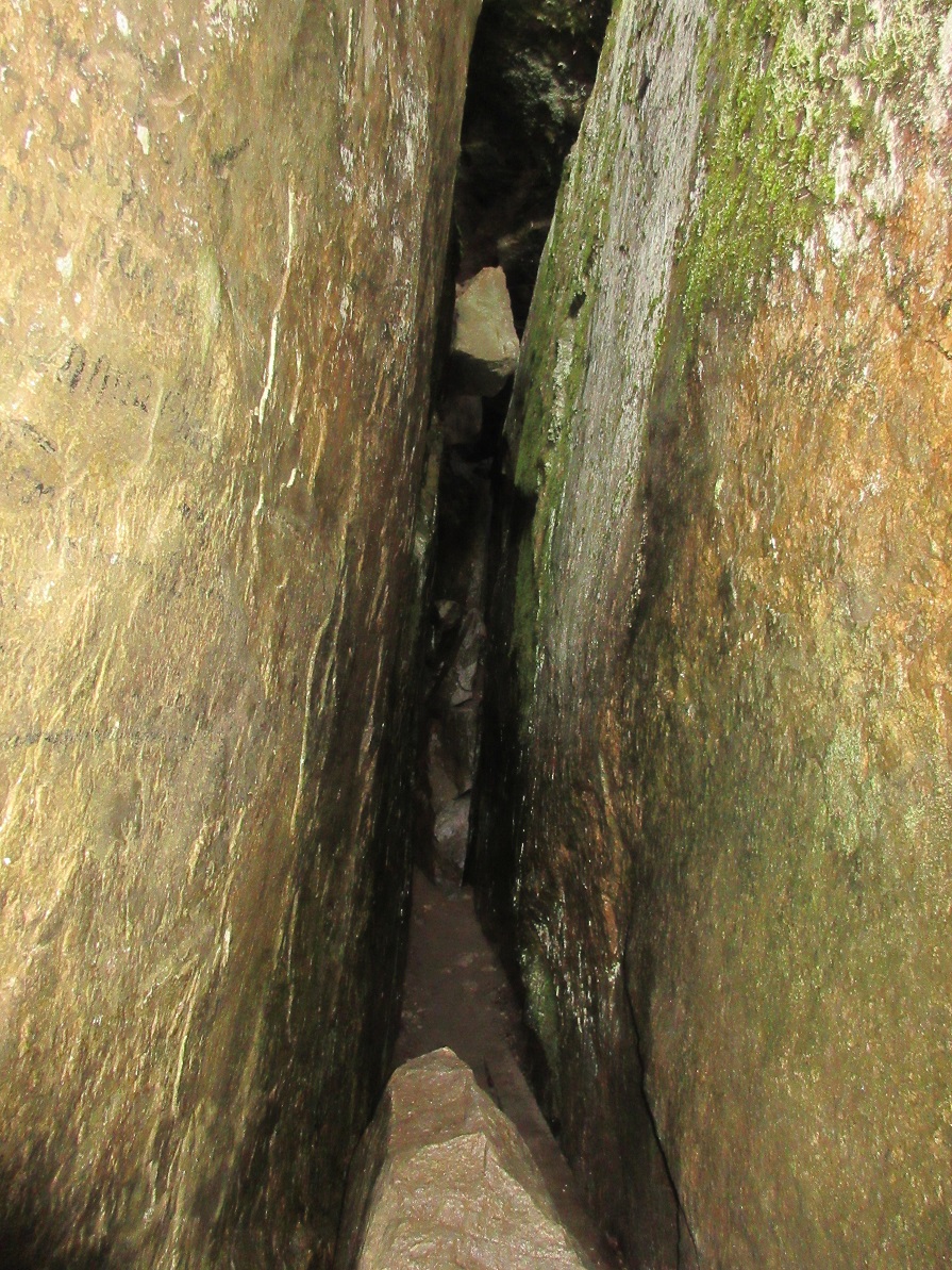 Netistä olin vakoillut, että kyseessä on Z-kirjaimen muotoinen 34 metriä pitkä halkeama/luola jonka seinään Eero Järnefelt oli töhertänyt tekstiä: