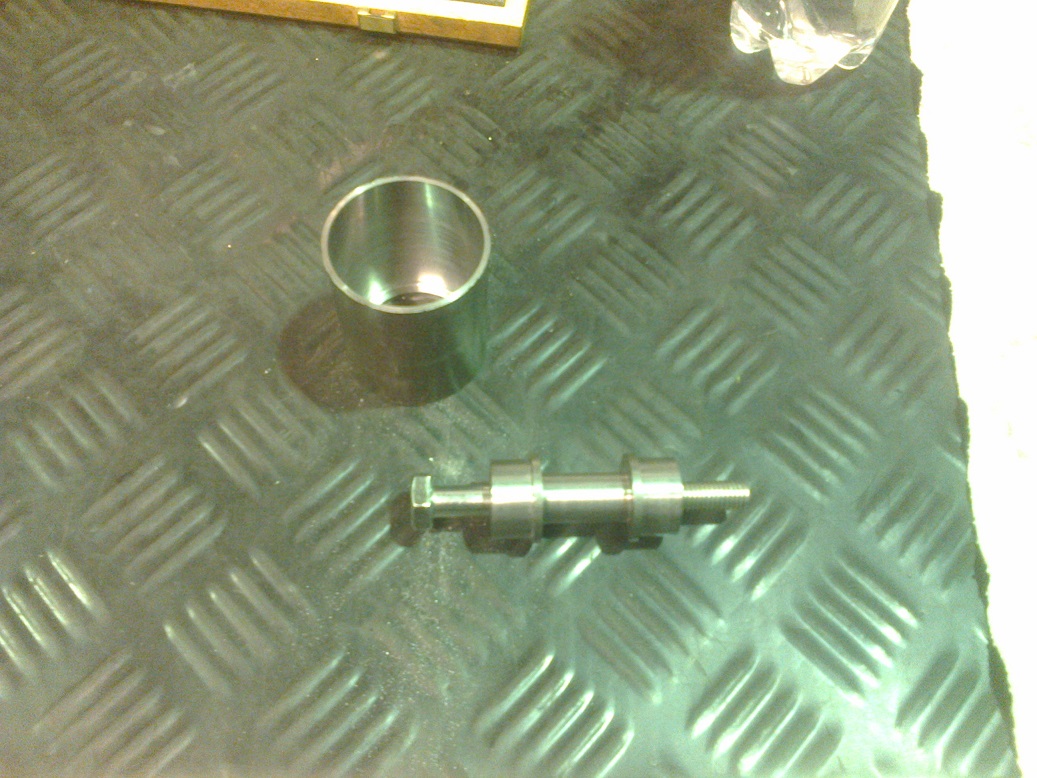 Tuo holkin olake pitäisi olla tuolla keskellä, jotta laakeri kantaisi akselin suunnassa molemmin päin. Holkin keskellä pitää olla paksumpaa osaa hitusen vähemmän kuin akselissa sisempien olakkeiden väli. 0,1 mm on sopiva välys, mutta voi se olla suurempikin. Tärkeintä, ettei kanna kehältä, kun keskipultti kiristetään.