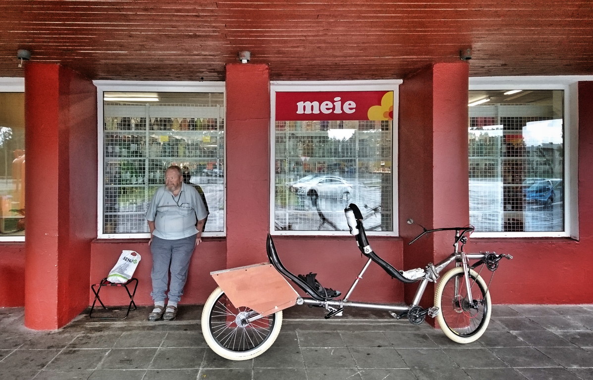 Muistelen ottaneeni kuvan tuosta tandemista Ecotripin ensimmäisen yöpaikan pihalla aamulla ennen lähtöä, muttei kuvaa löytynytkään puhelimesta. :( Onkos sinulla Pastori itselläsi parempaa kuvaa kuin tämä, jossa huolestuneet ilmeet kertovat huoltoauton huolista.