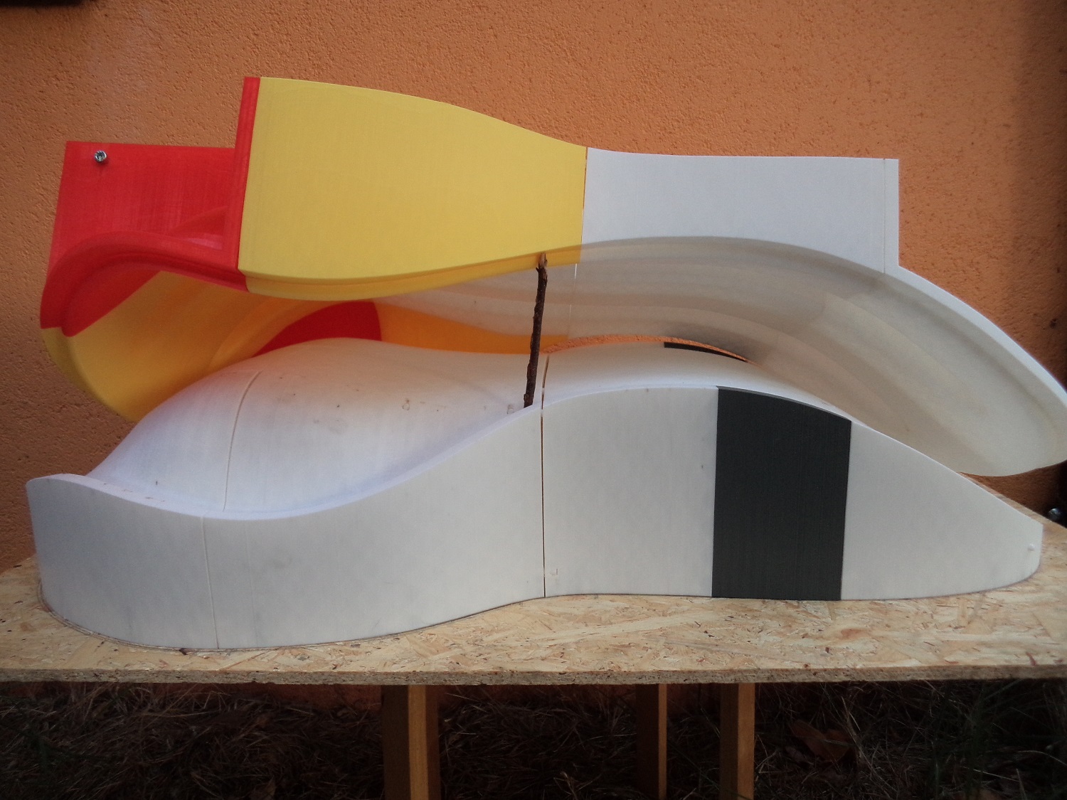 The huge work of the 3D printer is finished. two negative matrices for seat.
