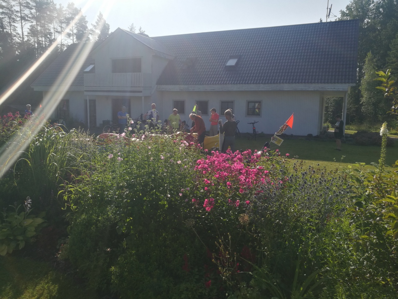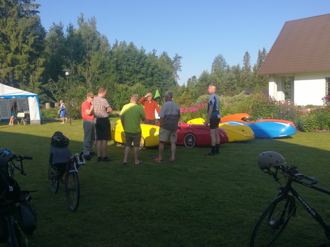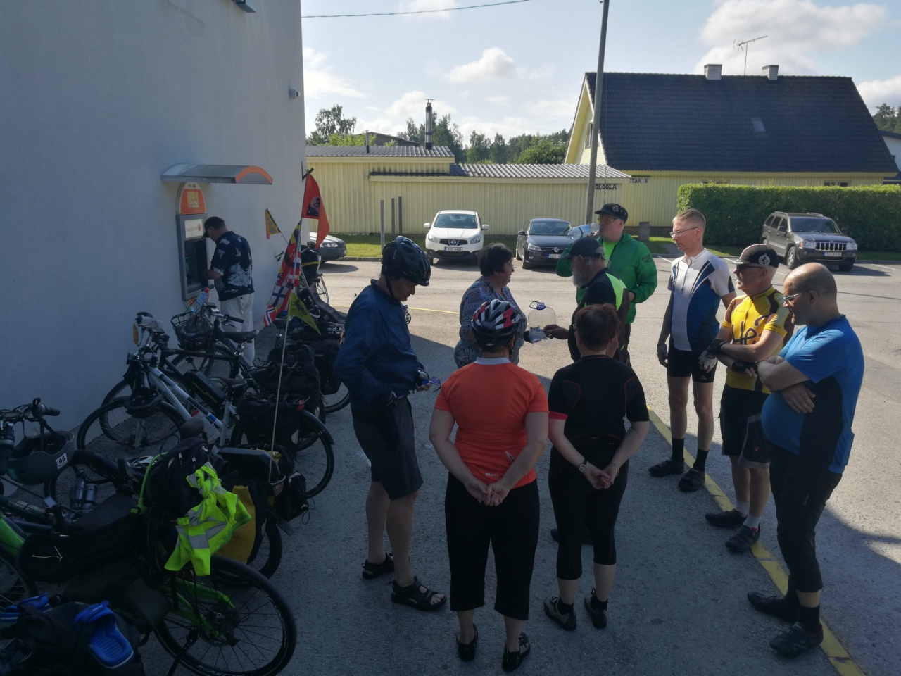 Lauantai oli päivän pisin reitti n. 70km ja alko tuntua perille pääsy polkemalla, täysin mahottomalta. Oltiin jääty tandemilla kahestaan ja vaikka jokainen vaihto kävi edellistä nopeammin, tuhraantui niihin aikaa. Majapaikan ja Kosen välillä (35km) ei myöskään ollut yhtään mitään, kauppaa, baaria ym piristystä. Onneks Kosessa oli porukat viel syömässä ja malttovat odottaa (hidasryhmä), ett myökin kerettiin lusikoida keittomme. Loppupäivä sujui ongelmitta ja paljon helpomman tuntusesti kun porukassa ajettiin. Tänään 35km siirtymä Tallinnan satamaan.