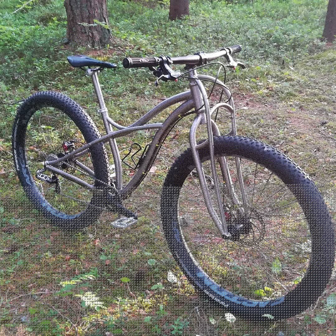 Nebulus kirjoitti:Yksi pitkäaikaisista pyöräunelmista toteutui eilen: ostin ensimmäisen käsityönä titaanista tehdyn pyöräni, Blacksheep Luna Vistan. Fillari on 11,6 kg painava ja varustettu 29x3" renkailla. Olen ihastellut trussirunkoisia pyöriä jo vuosikaudet, Jeff Jonesin Spaceframen ensinäkemisestä asti. Nyt sellainen tuli käytettynä sopuhintaan vastaan, joten kaupat piti tehdä.