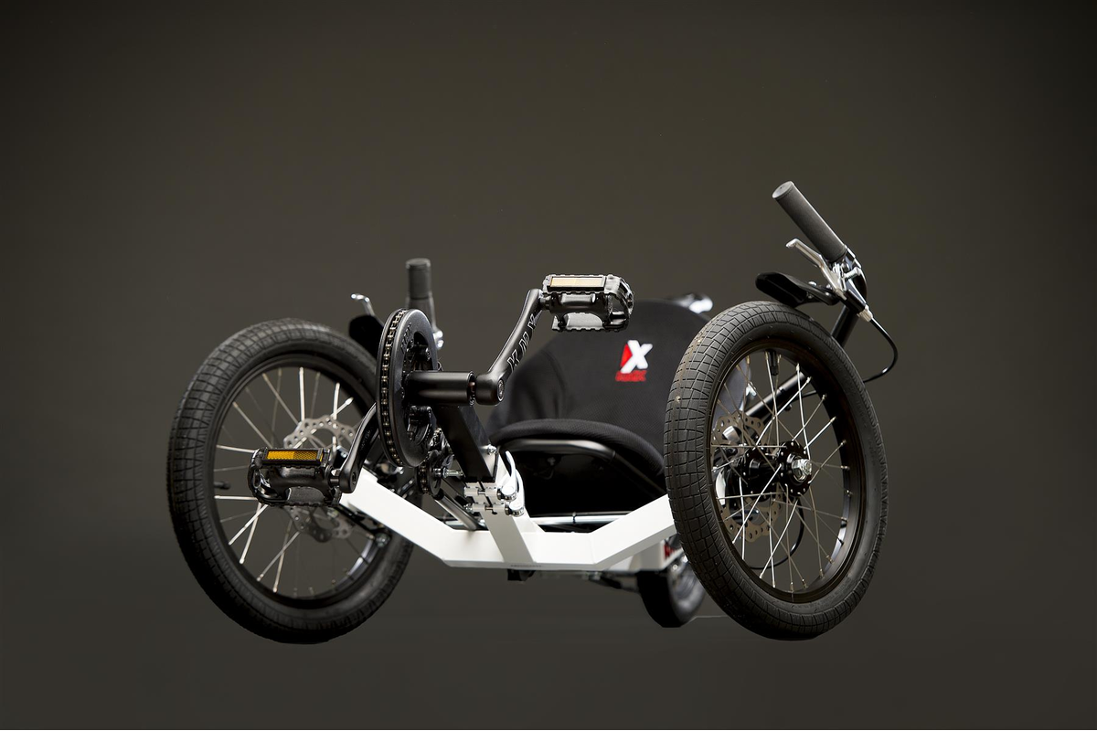 KMX E-Bike triket sähköavustuksella tarjolla. Sähköavustus max 25 km/h, valittavana joko 20" tai 26 " takakiekko. Sähköavustus on Ansmann-merkkinen ja siinä napamoottori 250 w.