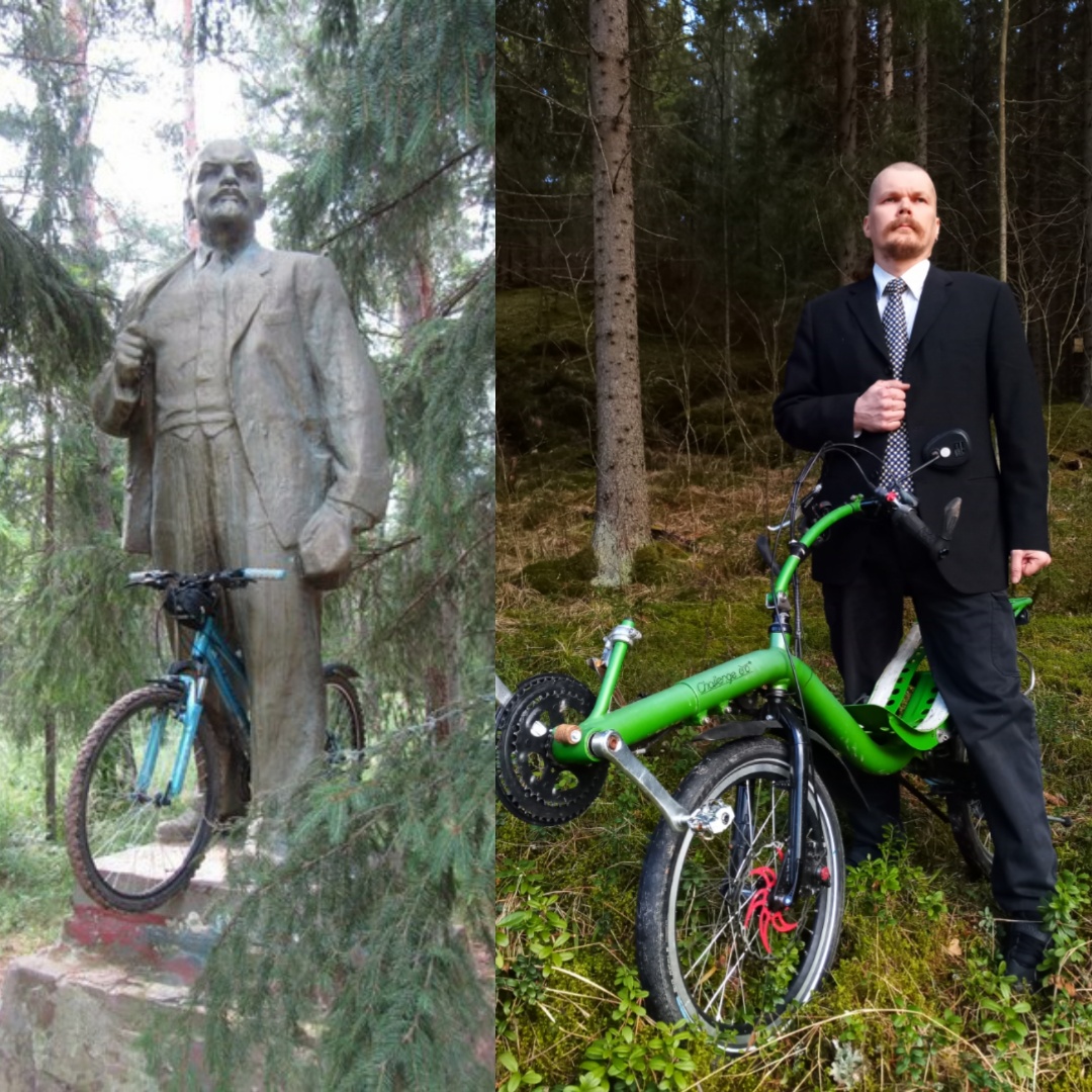 Pitikö pyörää karsia, että Lenin sai pyörän alleen. Polkimia ja satulaa tarkoitin.