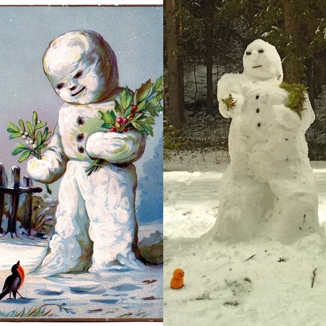 Ois toki nämäkin lumet voinut sataa talvella... kuvahistorian perusteella jouluaattona nippanappa on saanut raavittua lumihenkilön kasaan ja nyt sitten pääsiäisen jälkeen, välissä on voinut käydä sienessä ![]()