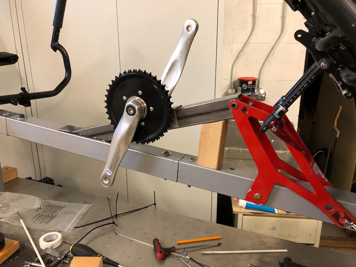 Tässä mennään. Huomenna takaketjut ja vaihdevaijerin pidennys. Sitten pääseekin jo koeajolle. Kuva